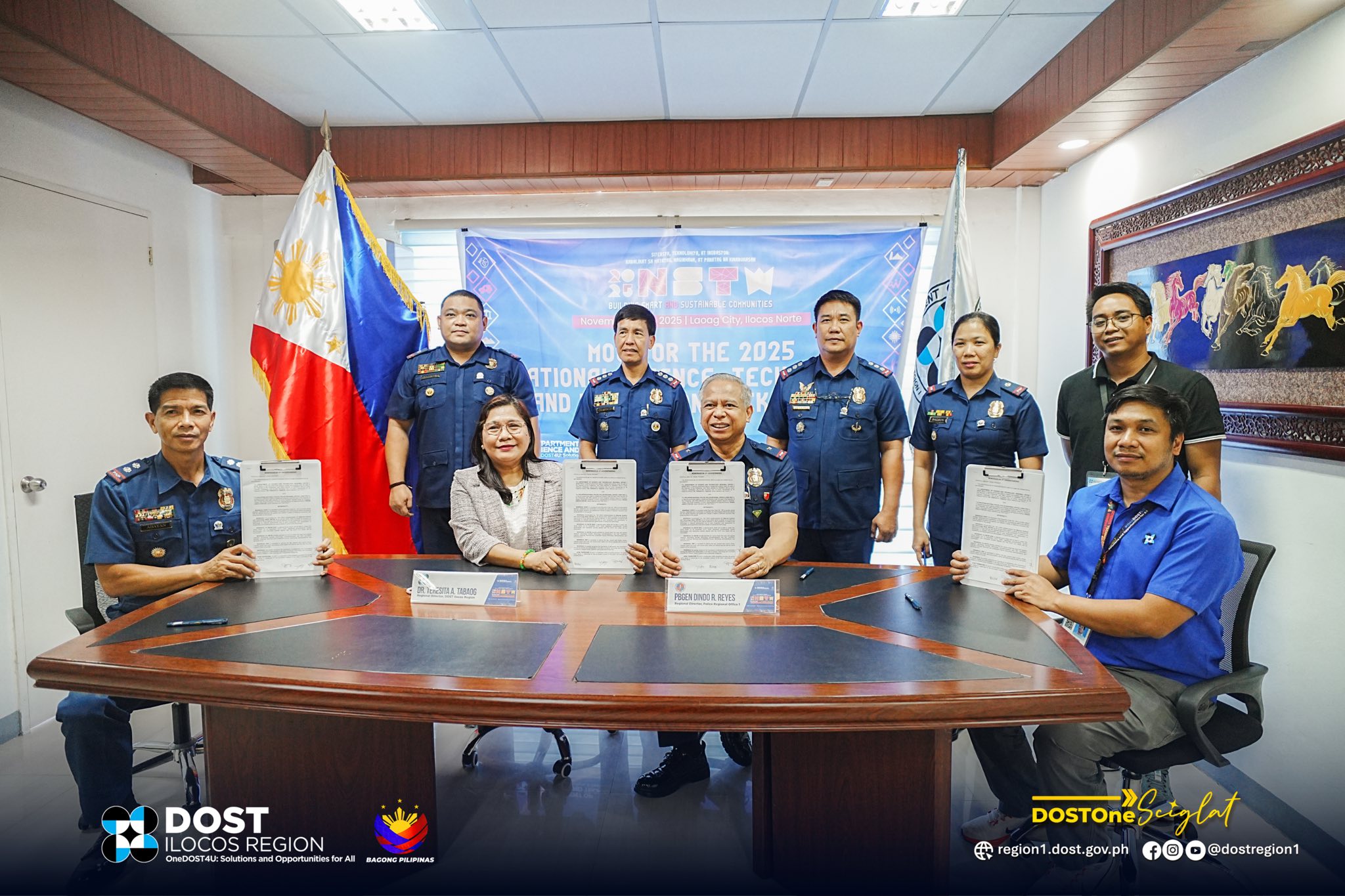 The Department of Science and Technology (DOST) Ilocos Region through Regional Director Teresita A. Tabaog and Assistant Regional Director for Field Operations Decth-1180 P. Libunao and the Philippine National Police (PNP) Region 1 formally sealed their partnership for the safety and security of the 2025 National Science and Technology Week (NSTW) through a Memorandum of Understanding (MOU) signing held on October 23, 2025 in Laoag City.