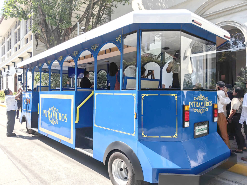 Designed to echo the tranvias that once operated in Intramuros in the late 19th century, the vehicle complements the historic atmosphere of the area while offering an environmentally friendly alternative to traditional diesel-powered transport.