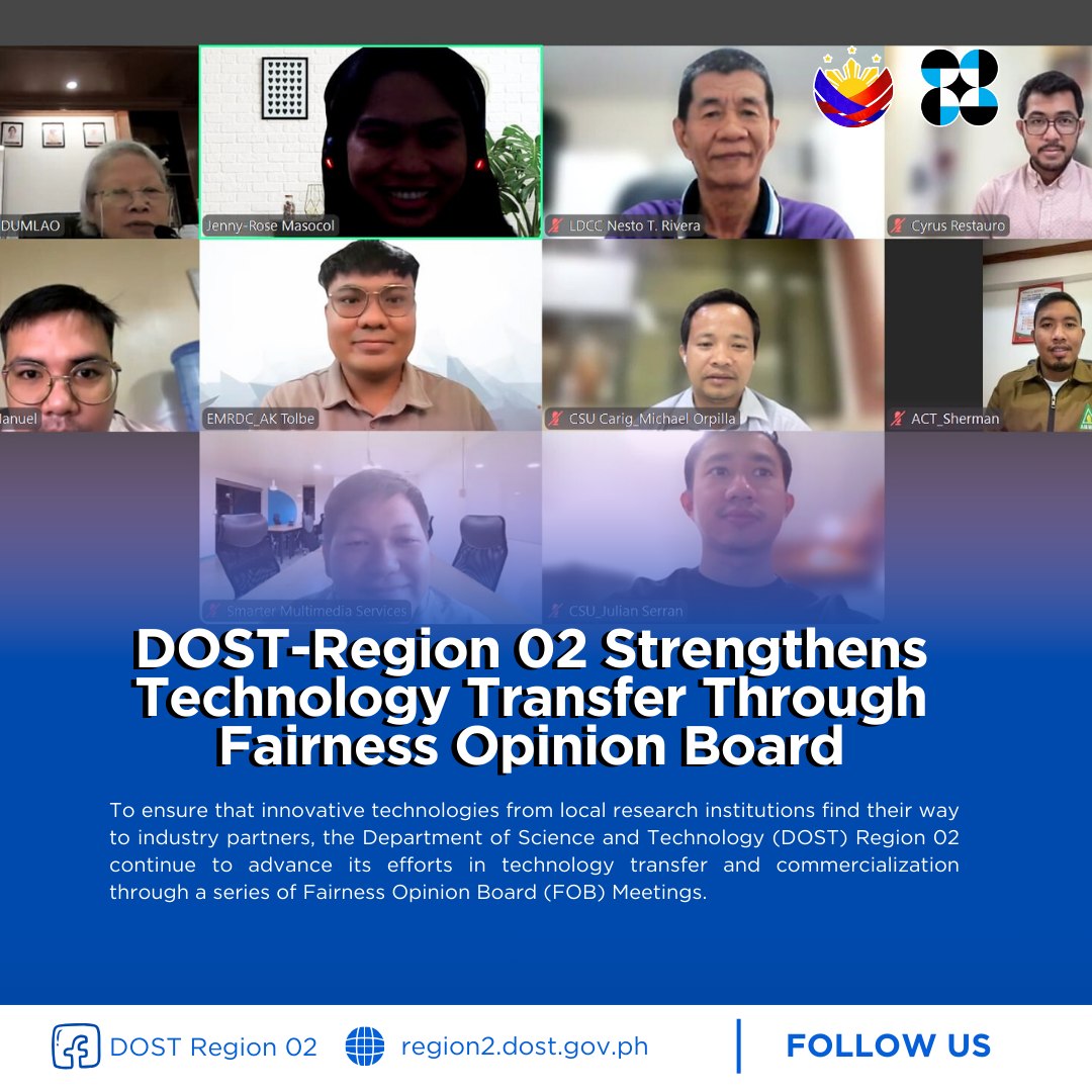 To ensure that innovative technologies from local research institutions find their way to industry partners, the Department of Science and Technology (DOST) Region 02 continue to advance its efforts in technology transfer and commercialization through a series of Fairness Opinion Board (FOB) Meetings.