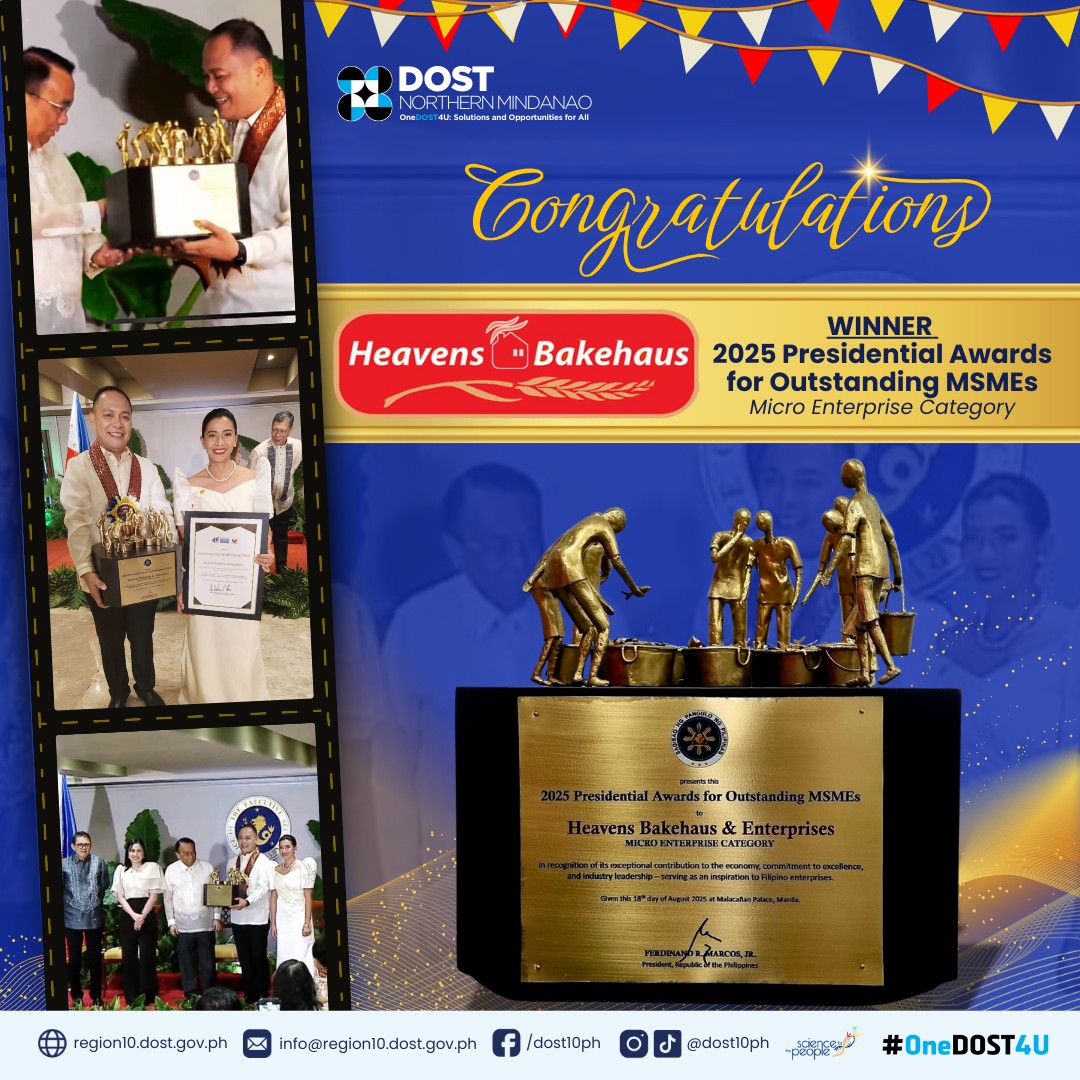 The DOST Northern Mindanao family celebrates this well-deserved victory with you, Heaven’s Bakehaus — a true example of how science, technology, and innovation can transform lives and communities. (DOST10)
