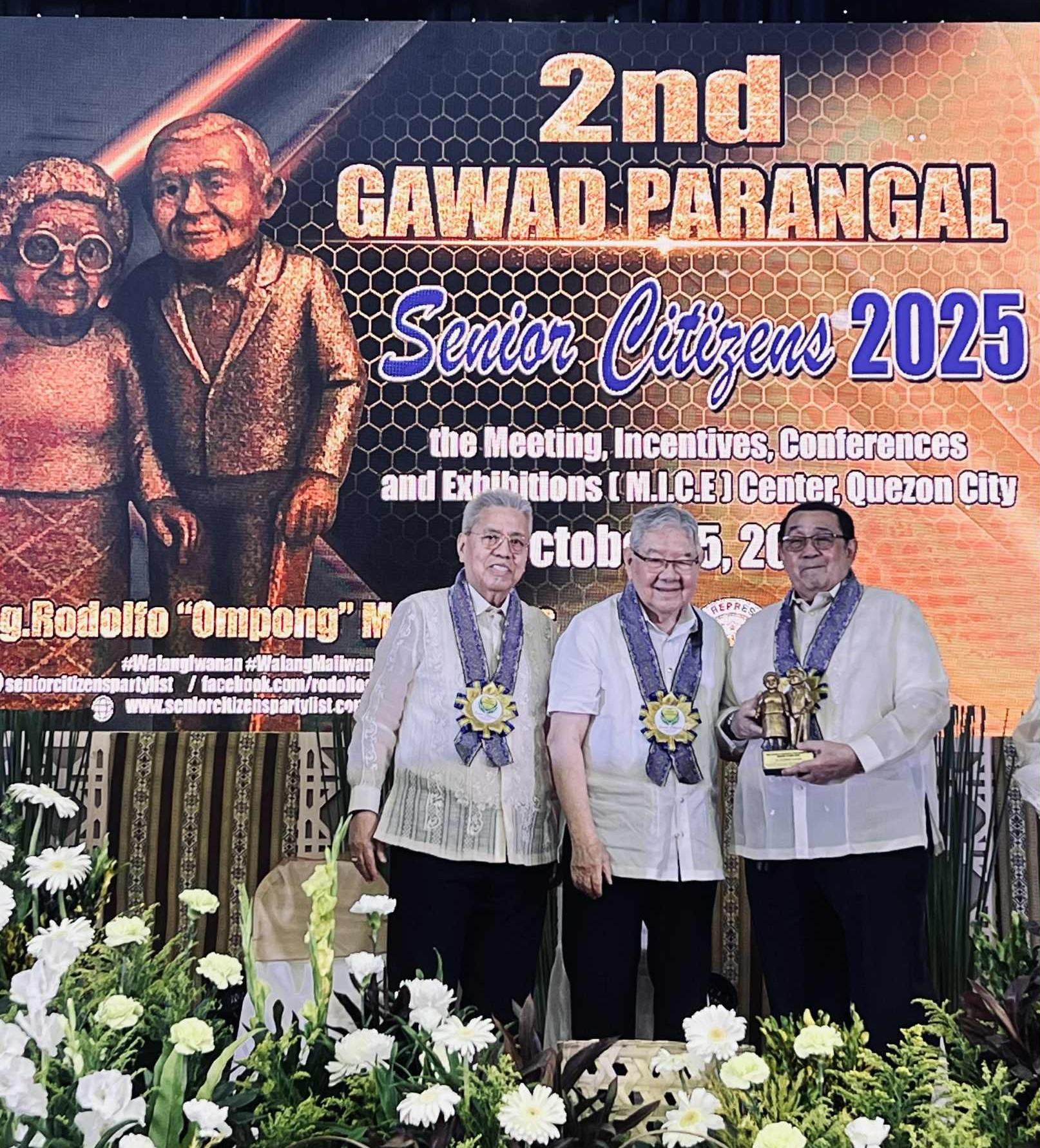 The Gawad Parangal for Exemplary Senior Citizen is an annual recognition program organized by the Senior Citizens Party List to honor Filipino seniors who have made remarkable contributions to the nation. The event aims to celebrate their wisdom, leadership, and enduring legacy in building a more inclusive and empowered Philippines. (Nelson Santos)