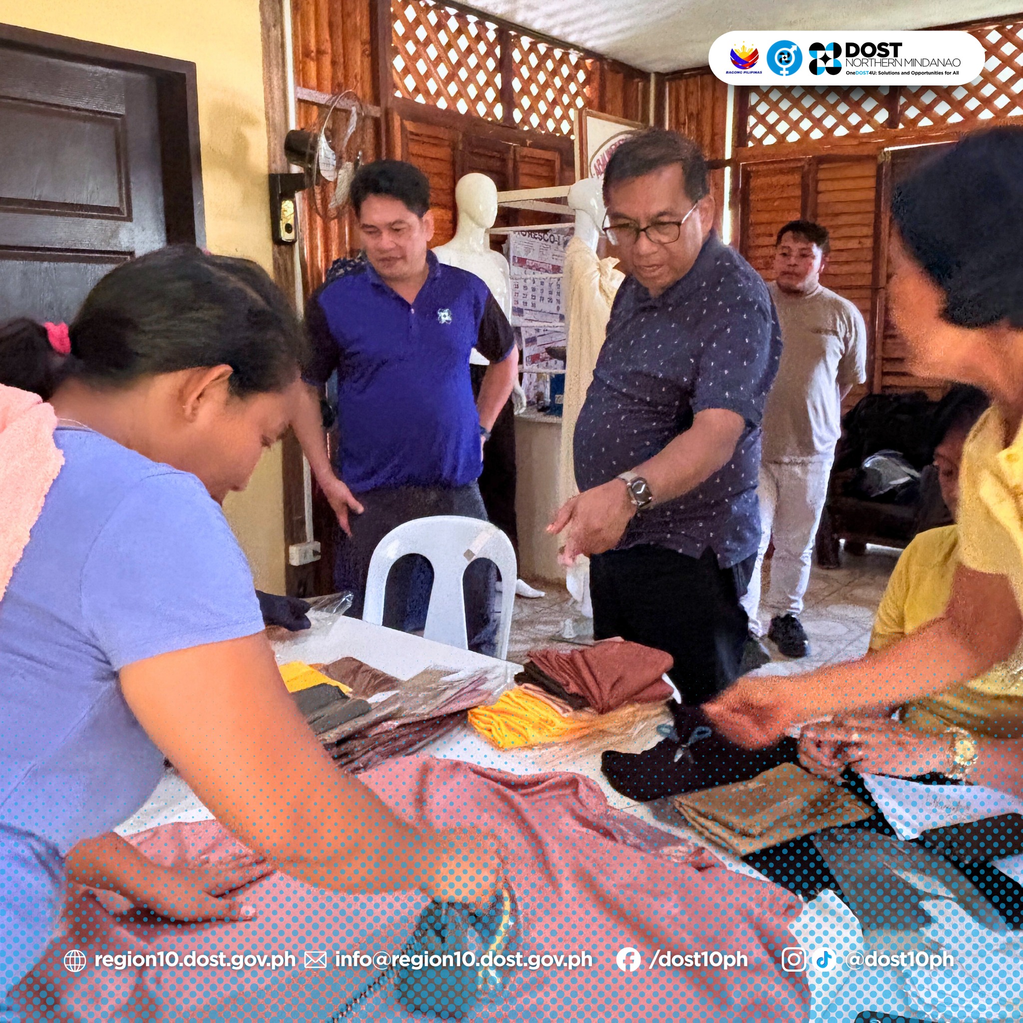 During the visit, Secretary Solidum observed weaving and natural dyeing demonstrations by four skilled members of the cooperative. Currently, ten active silk weavers in the province continue to strengthen the industry by training other weaving communities across Northern Mindanao—passing on their artistry and technical knowledge to preserve this centuries-old craft.